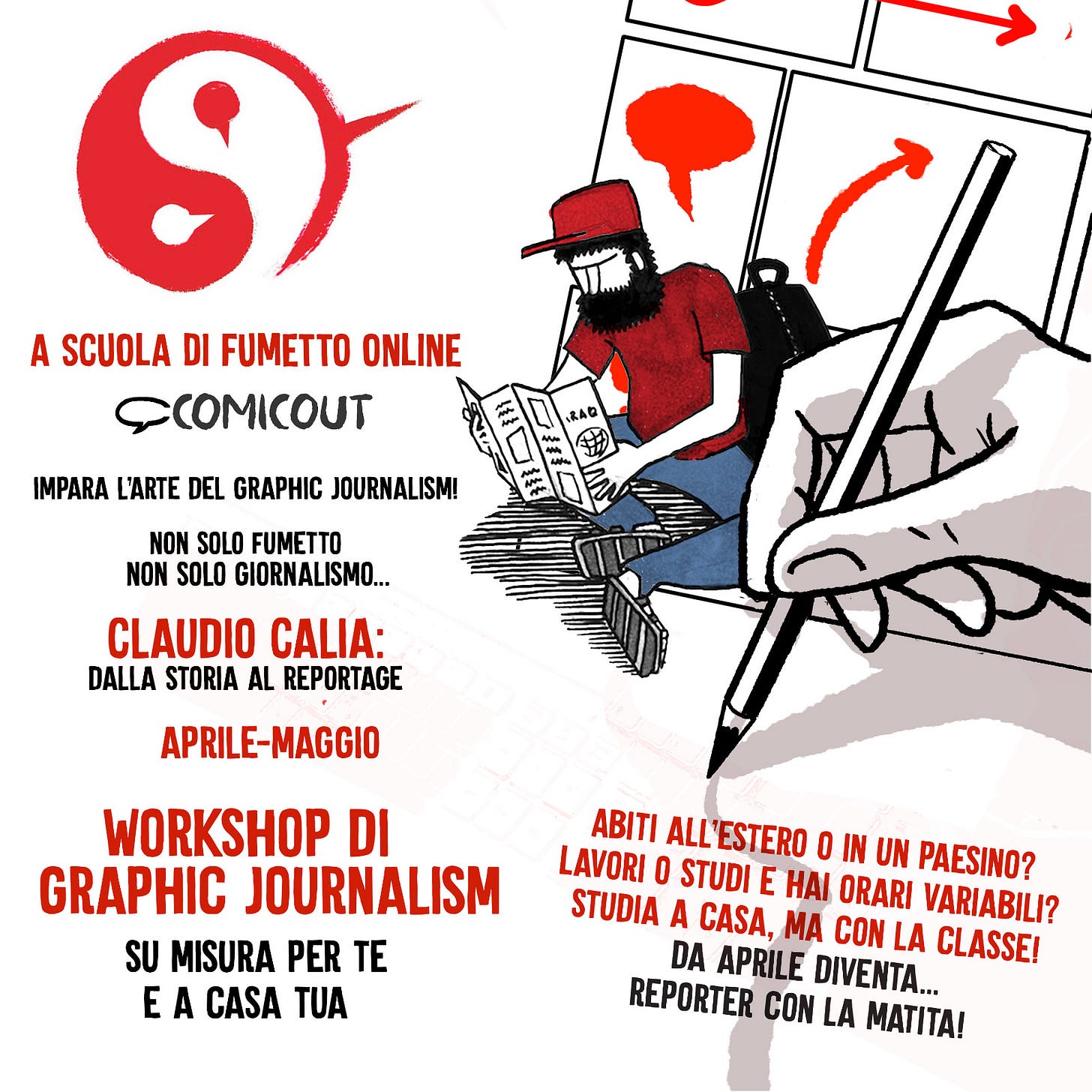 Per cui mi è oggettivamente difficile nascondere il mio entusiasmo nel dirti che, subito dopo l’uscita del mio Graphic Journalist. Manuale per il reporter con la matita proprio con Comicout, sto lanciando un corso online per la Scuola di Fumetto. Cinque lezioni a cadenza settimanale, un workshop intensivo per realizzare insieme una storia di graphic journalism, seguito passo passo dal tuo fumettiere di quartiere. Me lo chiedi sempre, di avvisarti quando c’è un corso, che hai quel cugino lontano che gli piacerebbe tanto e insomma… digli di dare un occhio…